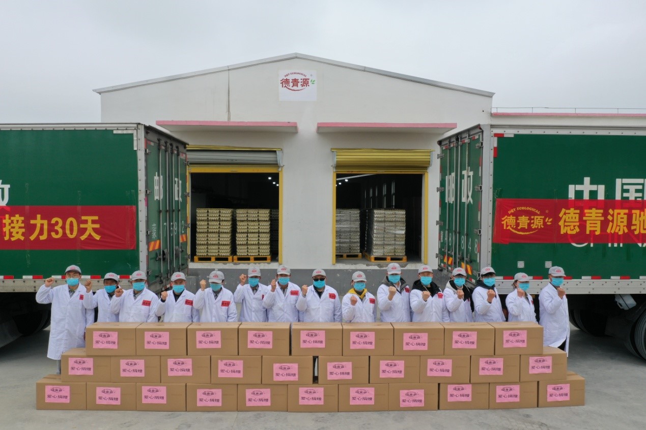 在這場農(nóng)歷庚子年的“疫情大考”中,德青源踐行社會責任與企業(yè)擔當?shù)靡栽俅握蔑@。在2003年抗擊非典的戰(zhàn)役中,德青源曾出色完成了北京市的蛋品供應保障任務,同時多次完成北京市多項重大活動的蛋品保障任務,形成了一套完善的供應保障體系。此次新冠肺炎疫情防控阻擊戰(zhàn)上,德青源充分發(fā)揮其在蛋品行業(yè)產(chǎn)業(yè)規(guī)模位居全國第一的優(yōu)勢和豐富的供應保障經(jīng)驗,主動發(fā)布請戰(zhàn)書,立下特殊時期雞蛋產(chǎn)品不脫銷、不斷檔的“軍令狀”,保供、保質(zhì)、保價,并向一線醫(yī)患捐贈愛心雞蛋,全力保障醫(yī)患人員和人民群眾的物資供應與營養(yǎng)支持,再次為行業(yè)作出了表率。