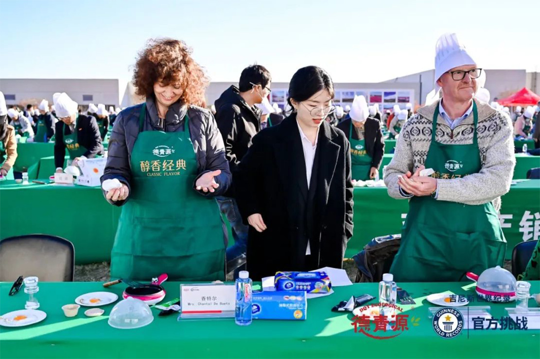 本次活動(dòng)經(jīng)吉尼斯官方確認(rèn),最終打破了“最多人同時(shí)煎蛋”(262人)的吉尼斯世界紀(jì)錄。與此同時(shí),本次挑戰(zhàn)吉尼斯活動(dòng)的主角——德青源“醇香經(jīng)典”無(wú)抗鮮雞蛋,更是引來(lái)了上海合作組織、比利時(shí)、土庫(kù)曼斯坦、薩摩亞、伊朗的駐華使節(jié)和夫人蒞臨現(xiàn)場(chǎng),共同為挑戰(zhàn)吉尼斯助陣。
