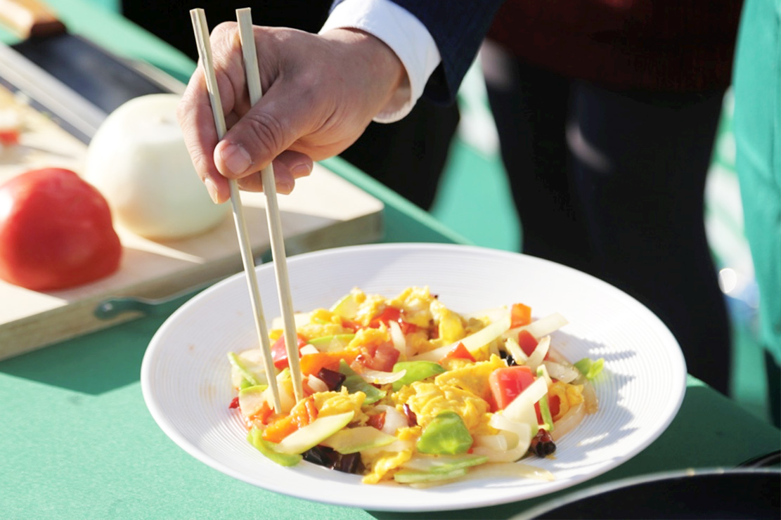 與其一同出席活動(dòng)的副秘書(shū)長(zhǎng)夫人穆尼拉女士(Mrs. Jononova Munira)在雞蛋煎制完成的第一時(shí)間就開(kāi)始品嘗起來(lái),“我是一個(gè)對(duì)腥味很敏感的人,但這顆雞蛋剛下鍋就有一股令人食欲滿滿的香氣,所以我才迫不及待地想嘗一嘗,果然不僅沒(méi)有一般雞蛋的腥味,口感還很軟糯蓬松,這就是我想象中的好雞蛋該有的味道。”