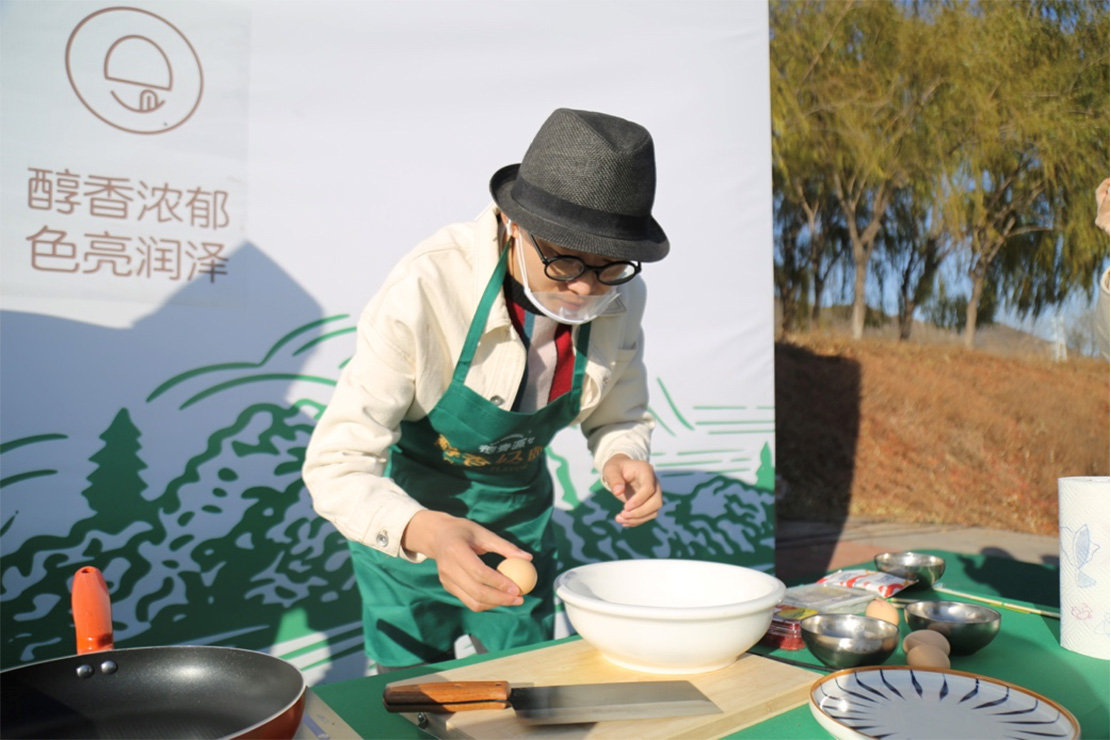 鄭大亮向大家介紹道,此菜按中醫(yī)中藥君臣佐使理論,雞蛋為君,青椒黃瓜西葫蘆是臣,西紅柿是佐,辣椒洋蔥為使,所以雞蛋一定要用德青源,鮮美絕倫;西紅柿一定選自然成熟的,多汁味濃。這兩點(diǎn)是“鎖住”美味的關(guān)鍵秘鑰。“七彩醇香蛋” 可拌面、拌飯、就饅頭,營(yíng)養(yǎng)全面老少皆宜利國(guó)利民。他還笑說(shuō),這道菜是西紅柿炒雞蛋的升級(jí)版,也是新疆過(guò)油肉的近親。