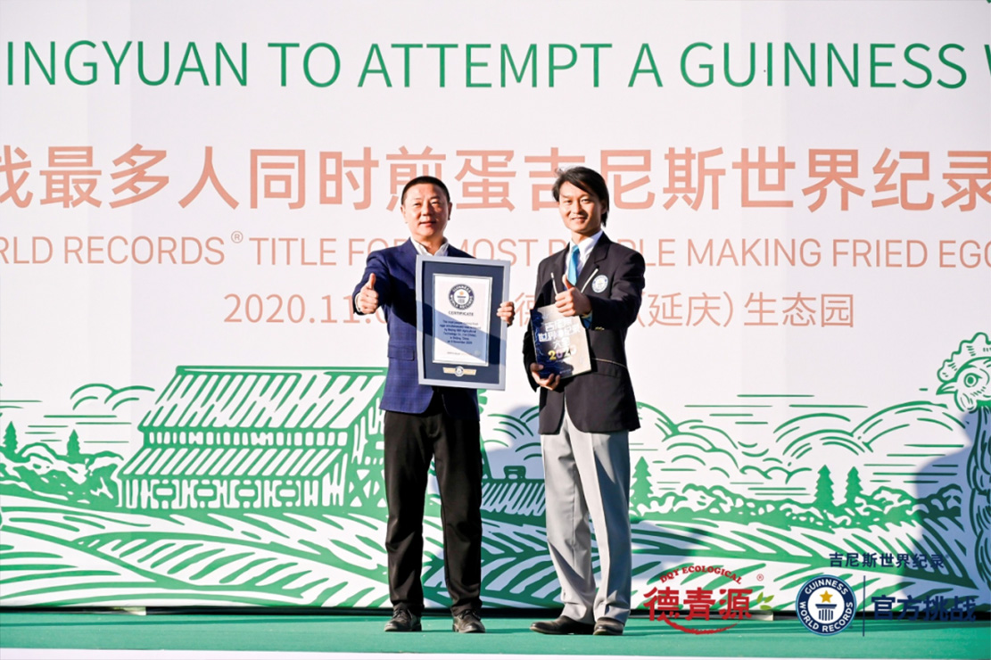 吉尼斯官方認(rèn)證官為德青源總裁鄭大亮頒發(fā)認(rèn)證證書(shū)